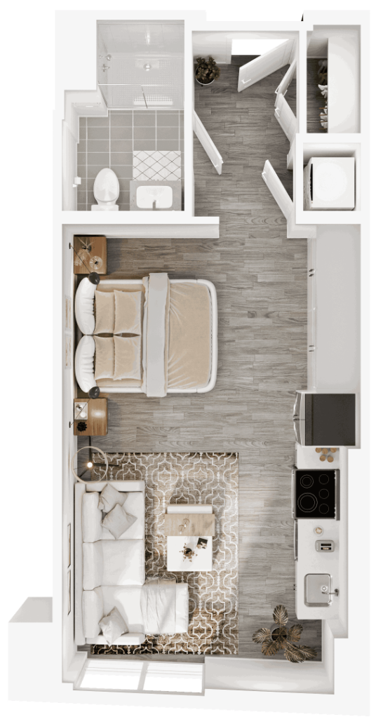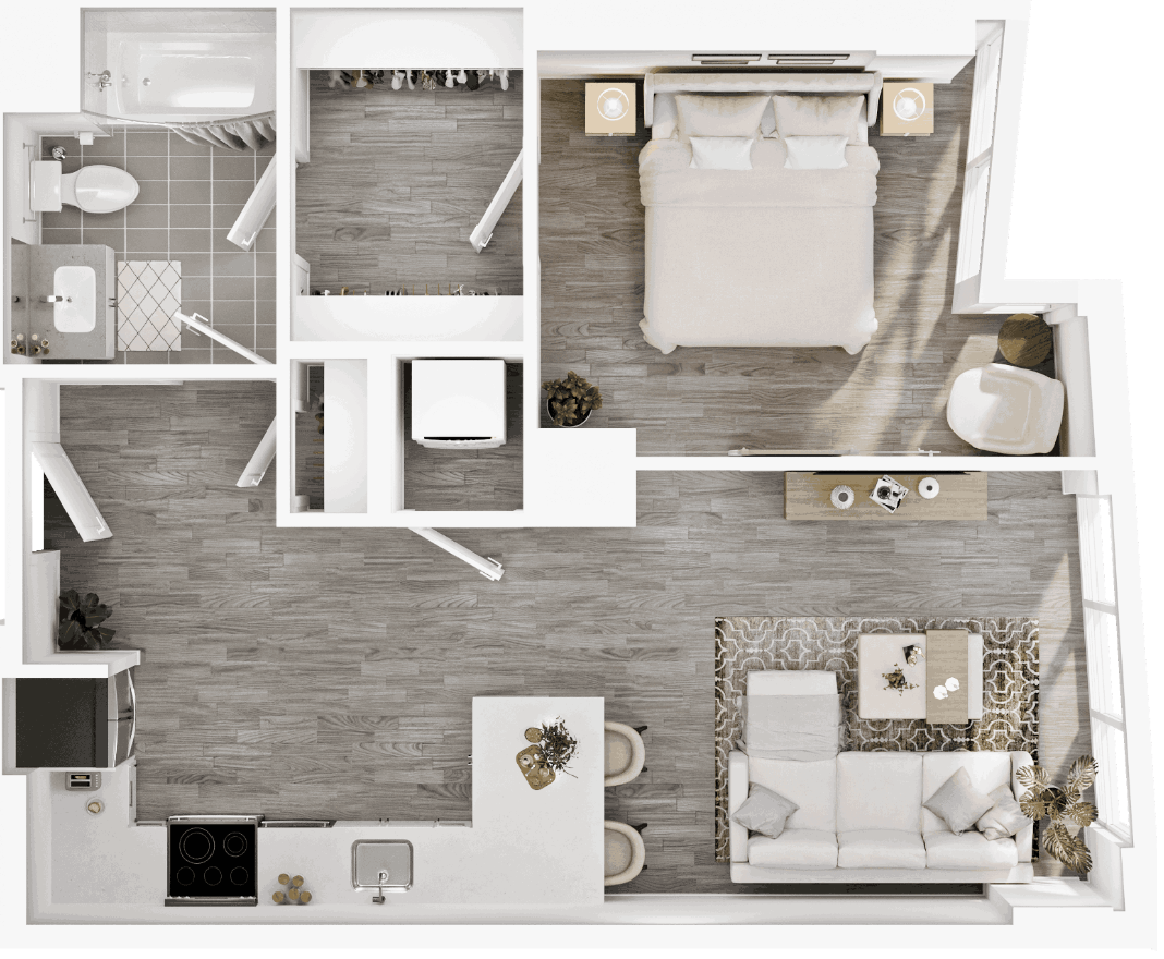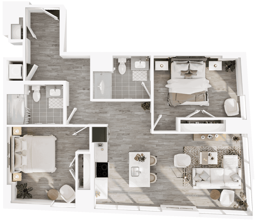 公寓房间设计合理,配有硬木地板、大窗户和宽敞衣橱,部分户型还带阳台。每个单元都配备独立洗烘机、中央空调和独立厨房,厨房采用花岗岩台面,并配有冰箱、制冰机、炉灶、洗碗机、微波炉和烤箱。浴室内设有浴缸/淋浴,整体搭载自动喷水灭火系统、安全系统和网线接口,保障居住舒适与安全。公共设施方面,公寓提供健身房、游泳池、影音室、Spa、会议室和商务中心,公共区域及泳池、会所均覆盖WiFi。另有电梯、包裹代收服务、驻地维修团队与管理人员,配合安保系统,为住户带来便利与安心的居住体验。