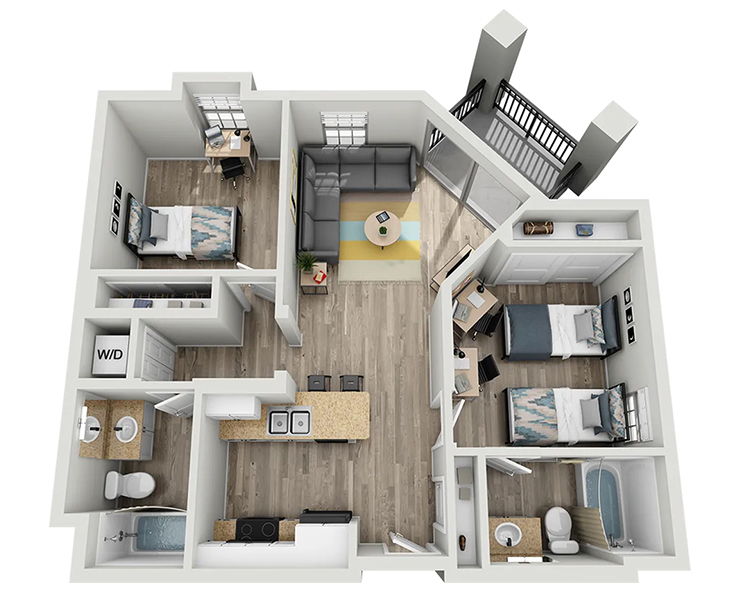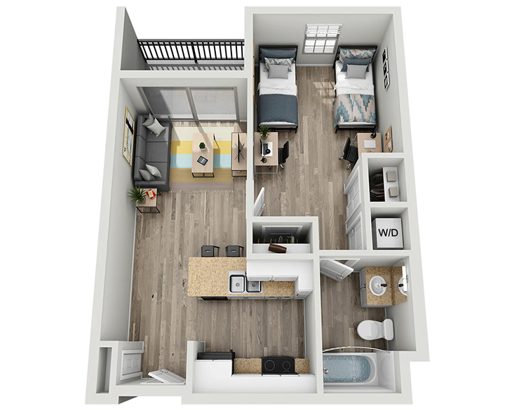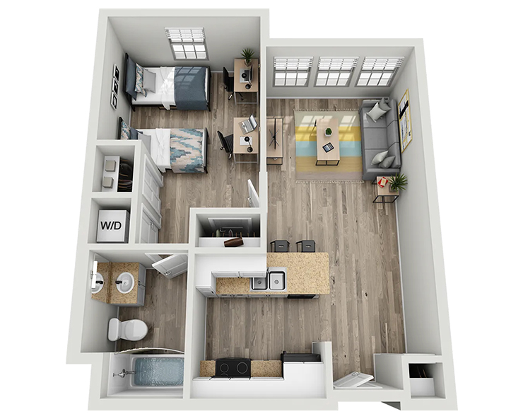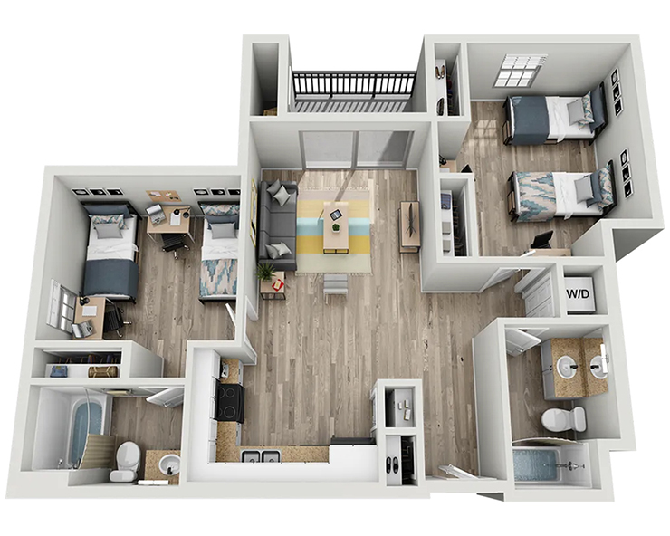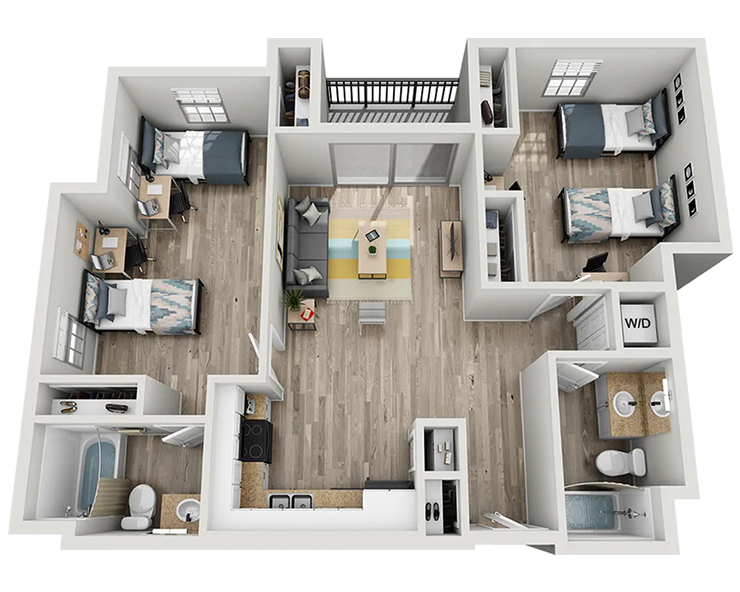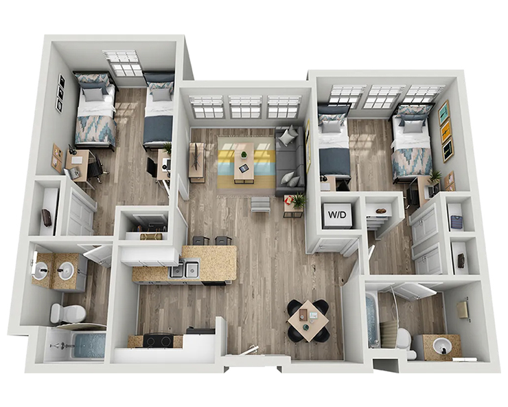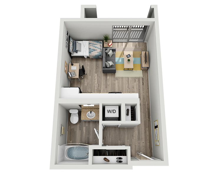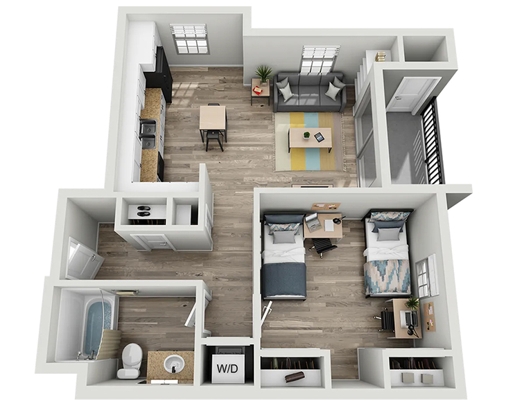 公寓内饰精致高端,配有独立卧室及私人浴室、木质地板、现代家具、花岗岩台面、不锈钢家电、平板电视以及室内洗衣机与烘干机。West 27th Place 为您提供优雅而便利的居住环境,步行数分钟即可到达USC校园,让您轻松享受高品质的学生生活。