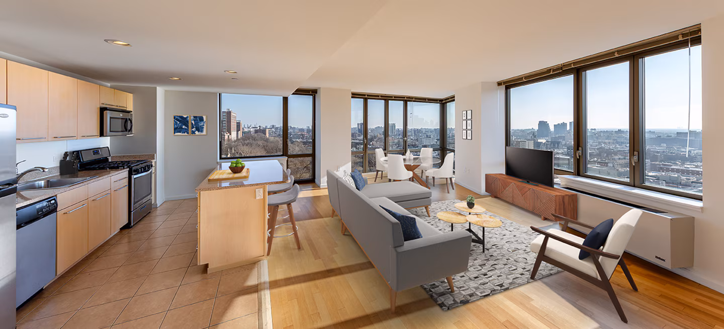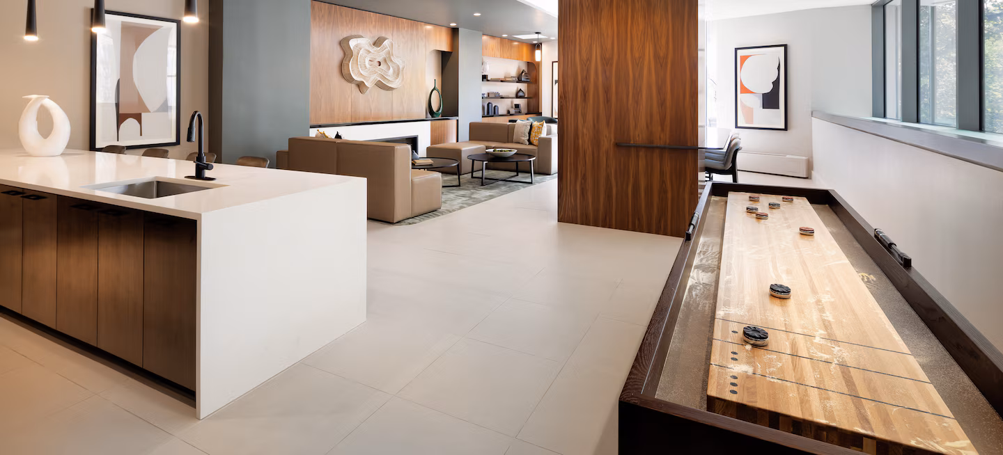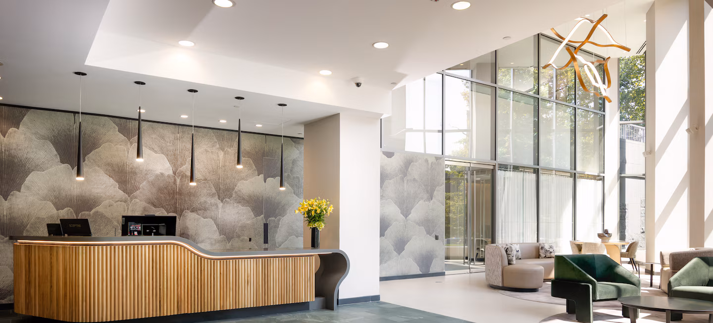 社区设施完善,设有健身中心、瑜伽室、住户休息室、公共区域WiFi、自行车架与储藏区、车库停车位、室内儿童活动室及景观庭院。步行即可到达1号线与C线地铁站,周边餐厅、咖啡馆、公园与商店林立,生活便利舒适。