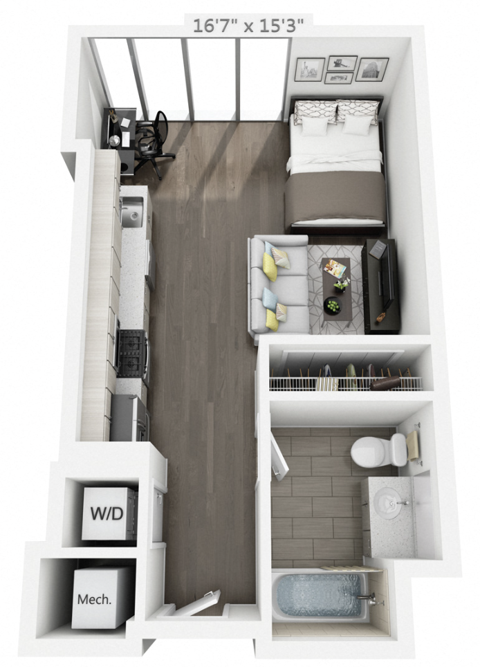 The Main公寓坐落于伊凡斯顿(Evanston)的核心地段,地理位置优越,靠近Rogers Park,周边有时尚餐厅、优质学校以及密歇根湖畔的公园与沙滩,生活环境惬意宜人。公寓配备奢华装修与高端配置,包括仿木地板、不锈钢燃气炉、石英台面、私人阳台等,所有户型均为宠物友好型。社区设施同样一流,设有24小时健身中心、景观露台和现代化住户休闲区,提供安全的门禁管理与舒适的生活体验。房间类型