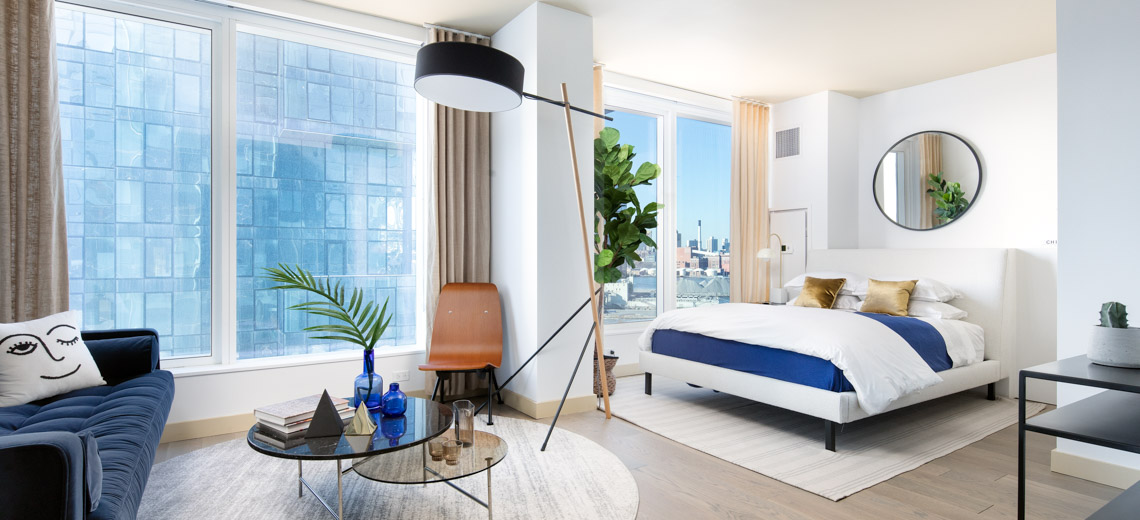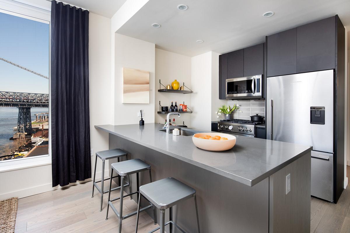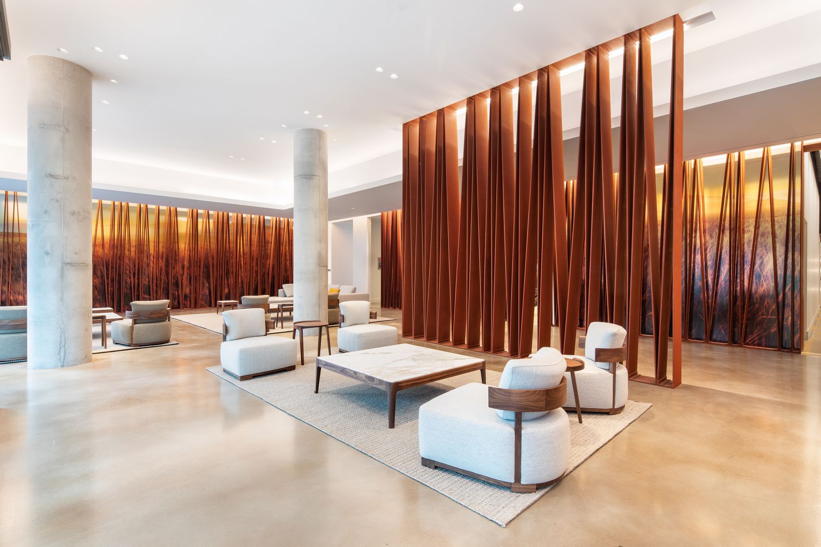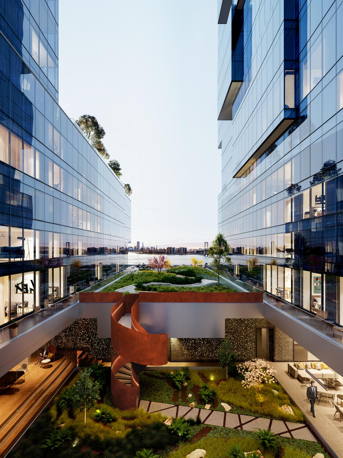 420 Kent 的设计突破了传统塔楼的刻板布局,许多住宅拥有三面景观及空中私人露台,俯瞰壮丽的城市与河景。大楼入口为私密的滨水环形车道,住户可在 24 小时礼宾大堂中感受温暖与格调的归家体验。公寓公共空间融合社区与艺术氛围,设有咖啡吧、艺术展览区等休闲场所,室内外环境自然衔接,既能欣赏城市天际线,也能享受静谧的私人空间。420 Kent 以创新设计与滨水生活完美结合,重新定义布鲁克林的高端居住标准。