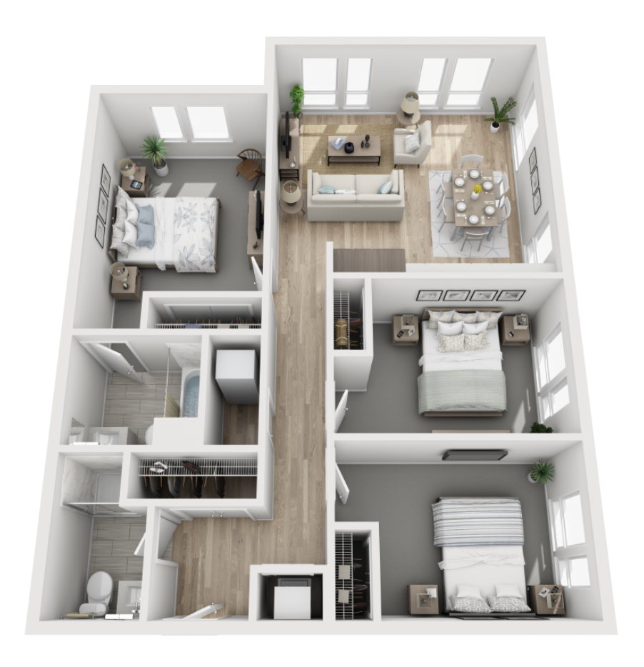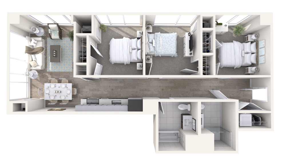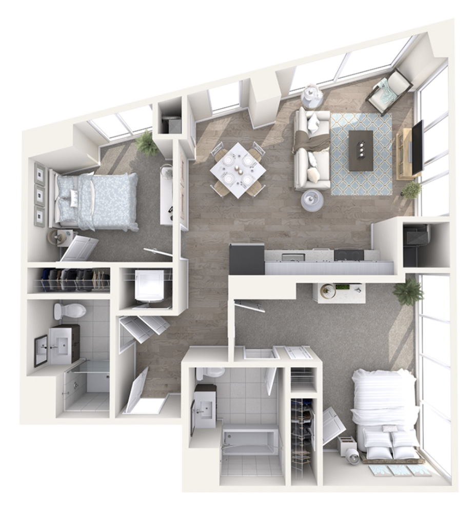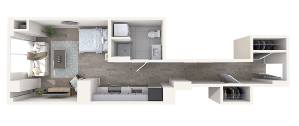 Watermark Central 坐落于剑桥 Mass 与 Main 的黄金交汇处,是集高层现代公寓与精品低层住宅于一体的综合社区,提供三种独特的居住选择——奢华的 Watermark Central、活力十足的 Link,以及温馨私密的 Union House。房间类型