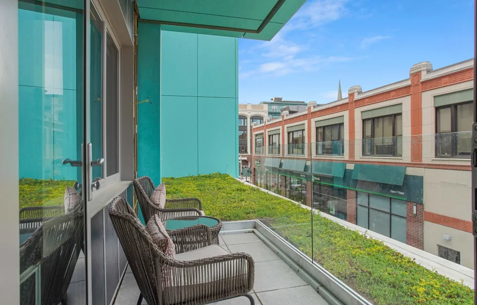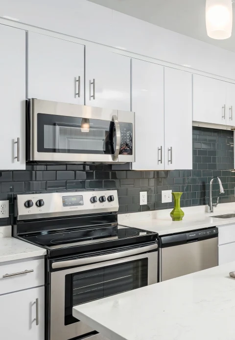 每间公寓以现代设计与舒适体验为核心,采用温和中性色调装饰,配备 Energy Star 级别暖通系统与家电、石英石台面、Thermafoil 橱柜、Nest 智能温控器及宽敞的室内洗烘一体机,打造高品质都市生活。