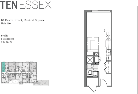 Ten Essex 公寓地理位置优越,紧邻 MBTA 红线 Central Square 站,出行便捷。周边餐厅、夜生活、购物场所与知名学府一应俱全,几分钟即可抵达哈佛大学、麻省理工学院、哈佛广场、肯德尔广场及波士顿市中心。
