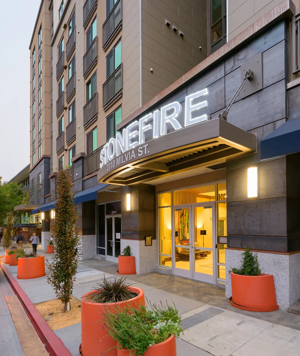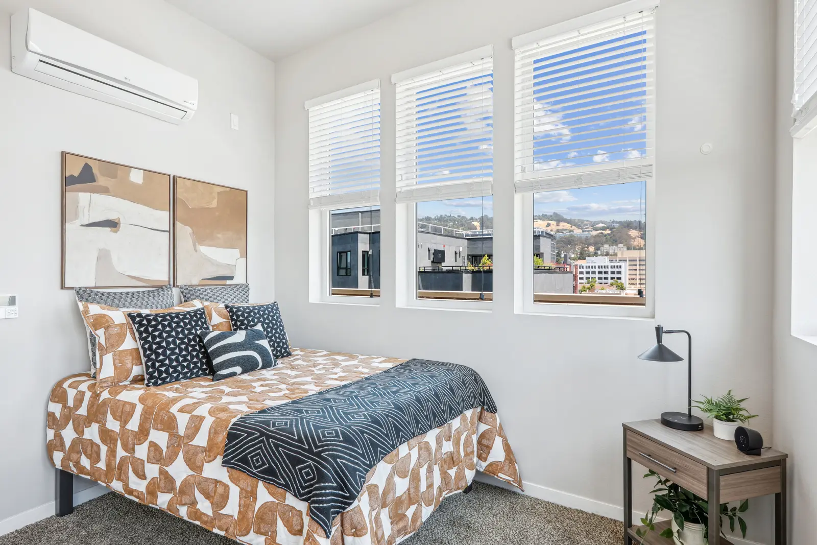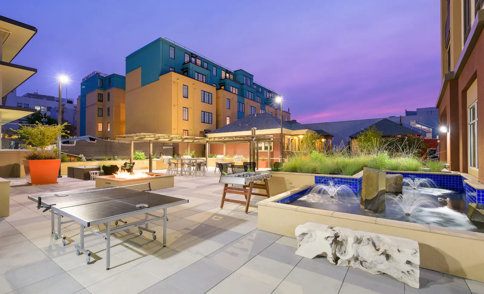 提供宽敞的 Studio、一居室、两居室及顶层公寓,房间布局宽阔,配备独立卧室、现代化大卫生间、不锈钢电器、套内洗衣机烘干机、大容量衣柜,以及可欣赏海湾、旧金山天际线和金门大桥的壮丽景观。室内装修精致,配有花岗岩台面、全套厨房设备与舒适的生活空间,打造高品质居住体验。公寓整体氛围轻松舒适,是众多学生心目中的豪华理想之选。