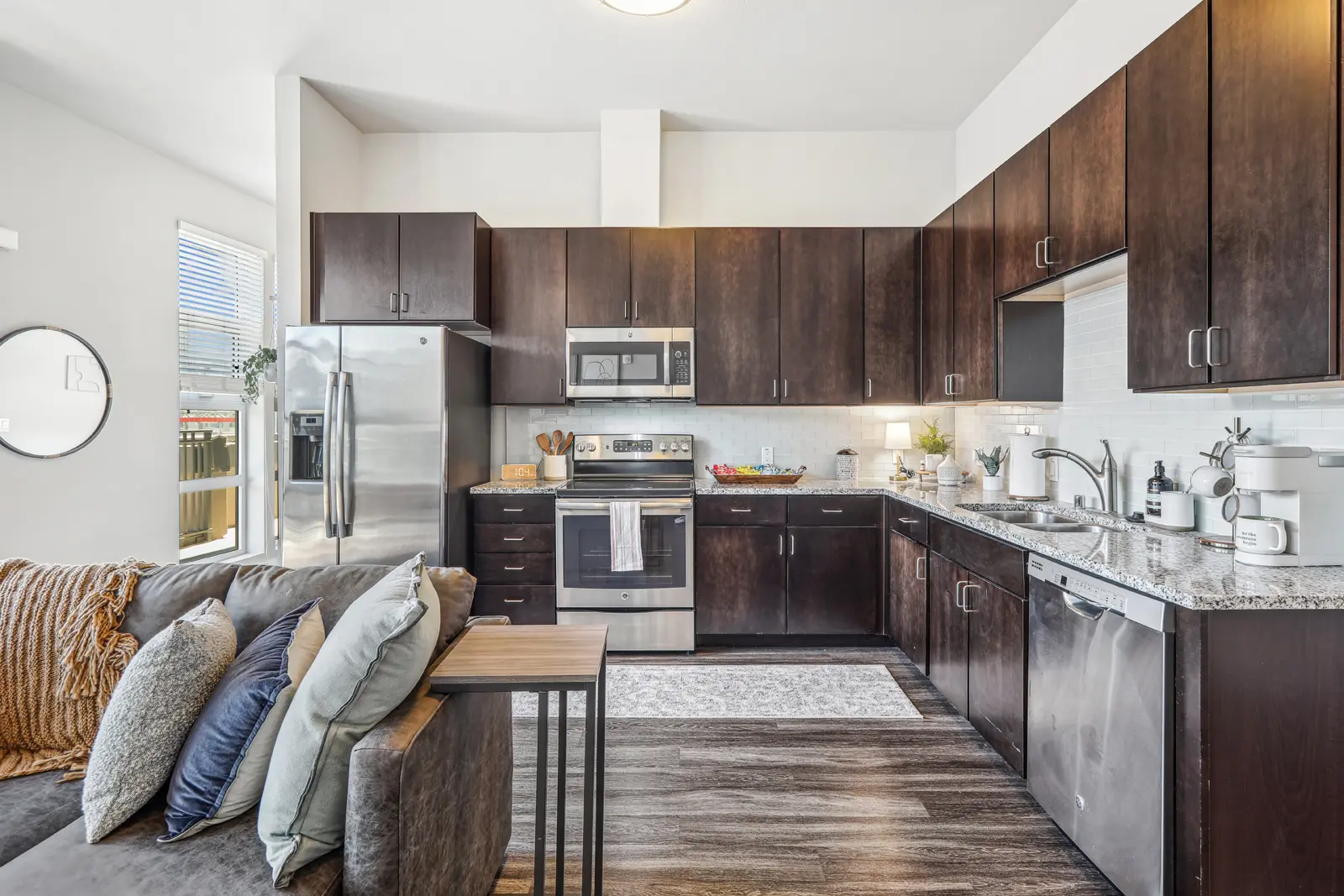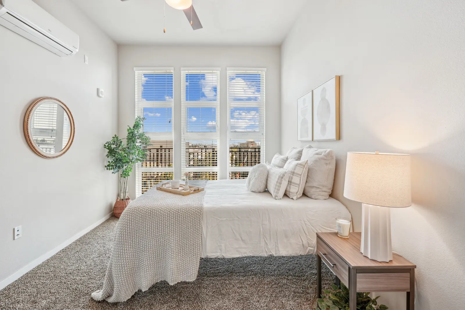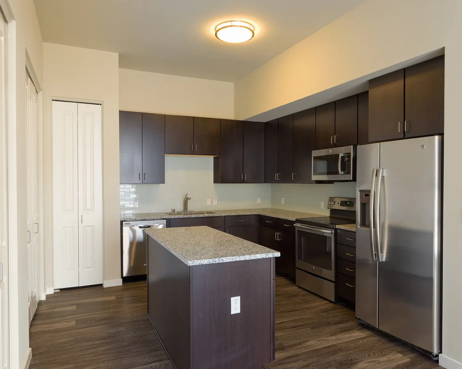 提供宽敞的 Studio、一居室、两居室及顶层公寓,房间布局宽阔,配备独立卧室、现代化大卫生间、不锈钢电器、套内洗衣机烘干机、大容量衣柜,以及可欣赏海湾、旧金山天际线和金门大桥的壮丽景观。室内装修精致,配有花岗岩台面、全套厨房设备与舒适的生活空间,打造高品质居住体验。公寓整体氛围轻松舒适,是众多学生心目中的豪华理想之选。