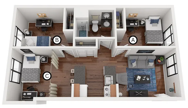 公寓紧邻 UC Berkeley,步行即可到达校园与周边餐饮、商圈及娱乐区。提供配备齐全的现代化公共设施,包括 24 小时健身房、温馨庭院、景观屋顶休闲区,并支持宠物友好生活。另有 $0 押金计划,让入住更加轻松。房间类型