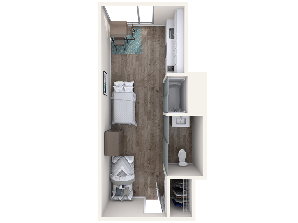 The Durant Apartments 提供安静高效的学习与生活环境。设有私密工作区、宽敞屋顶露台(可眺望旧金山与伯克利),并由专业团队定期清洁公共区域与(可选)房间。社区配备高速网络、手机 App 洗衣房、24/7 包裹柜、智能安防与自行车存放区。房间类型