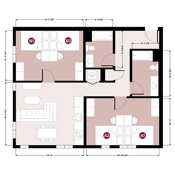 Hub Bancroft 距离校园与市中心仅数步之遥,地理位置优越,是探索 Berkeley 的理想起点。社区配备度假式设施,帮助住户在学习、生活与放松之间保持平衡。公寓采用节能环保运营方式,让你在舒适生活的同时也能践行可持续理念。房间类型