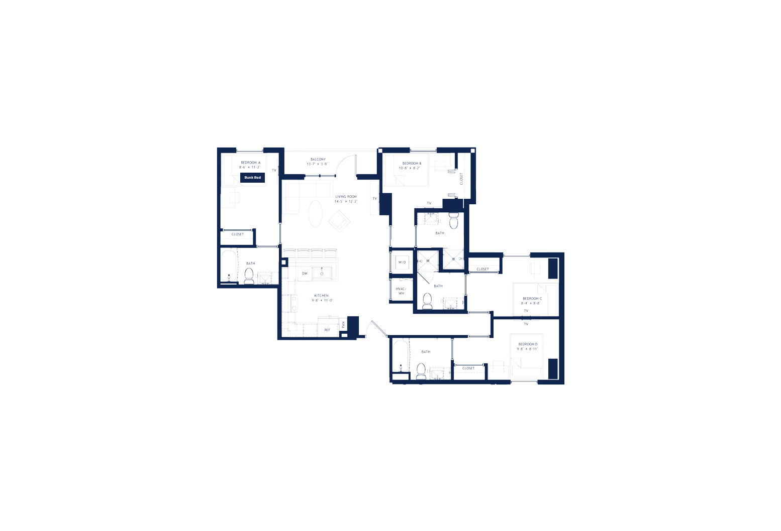 Whistler 提供从经典 Studio 到现代五室户型的多样选择,满足不同同学的居住需求。距离 Georgia Tech 校园与市中心仅几步之遥,这里是你探索 Atlanta 魅力的一站式起点,生活与学习都超级便利。房间类型