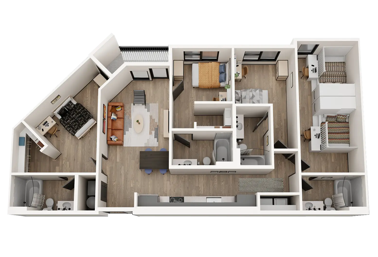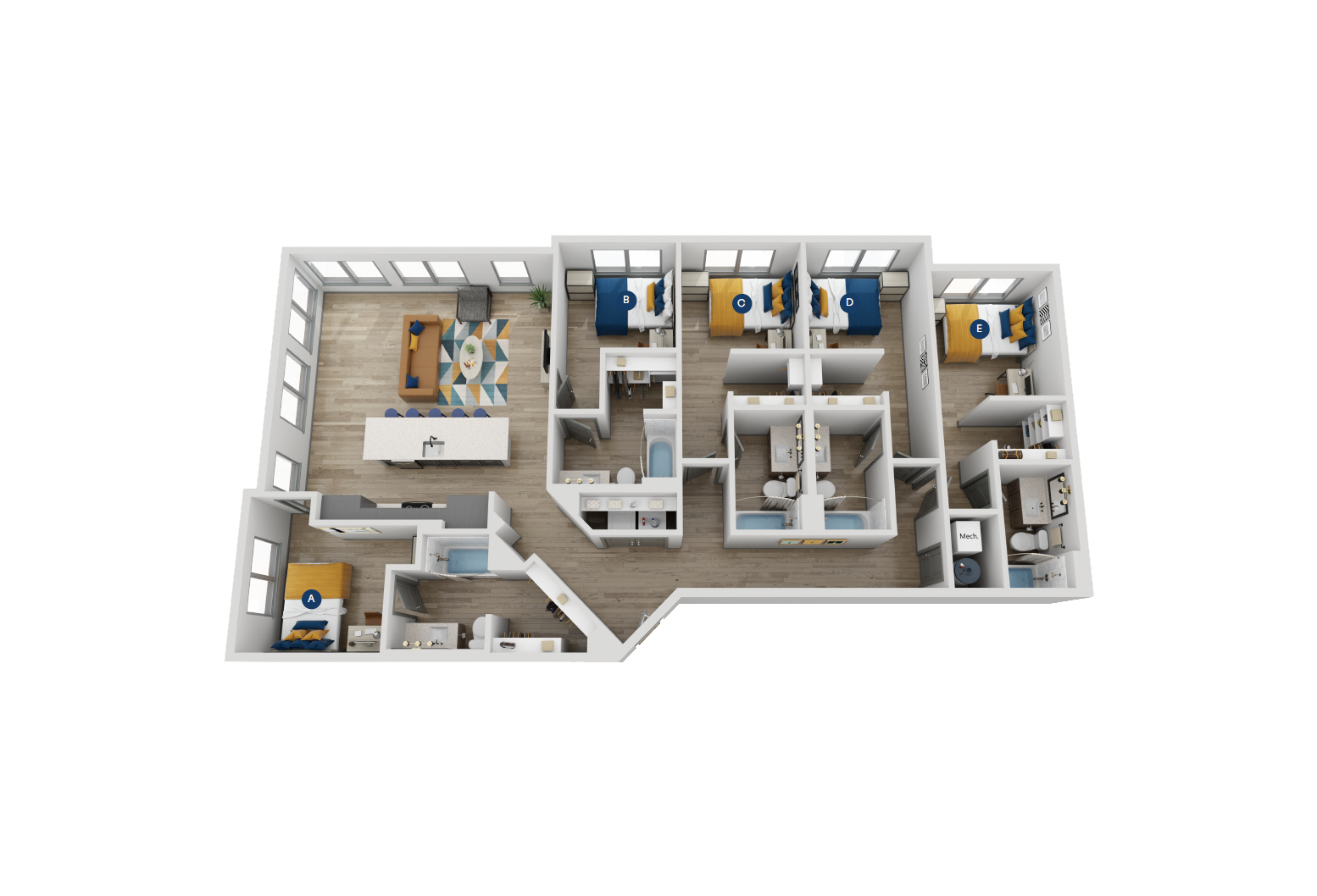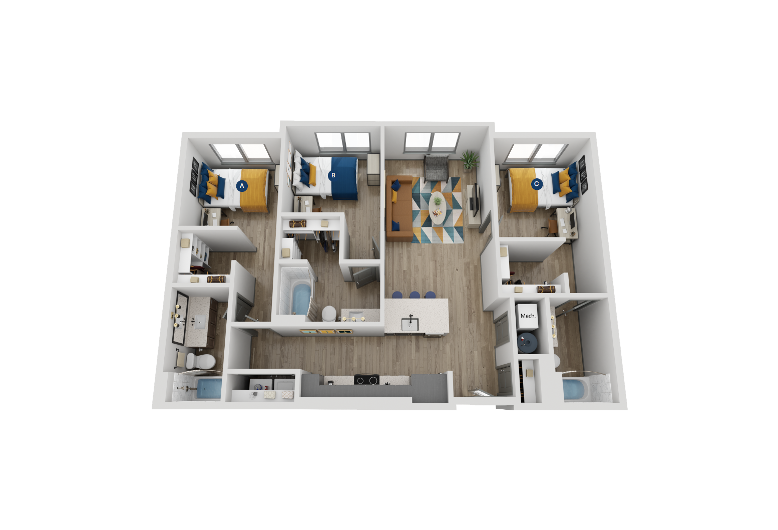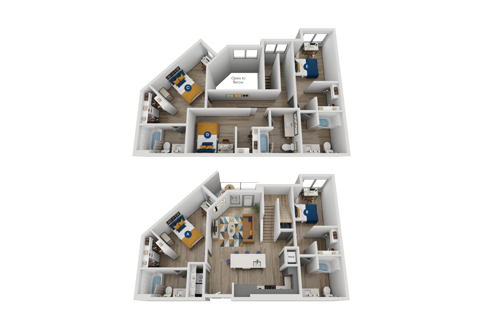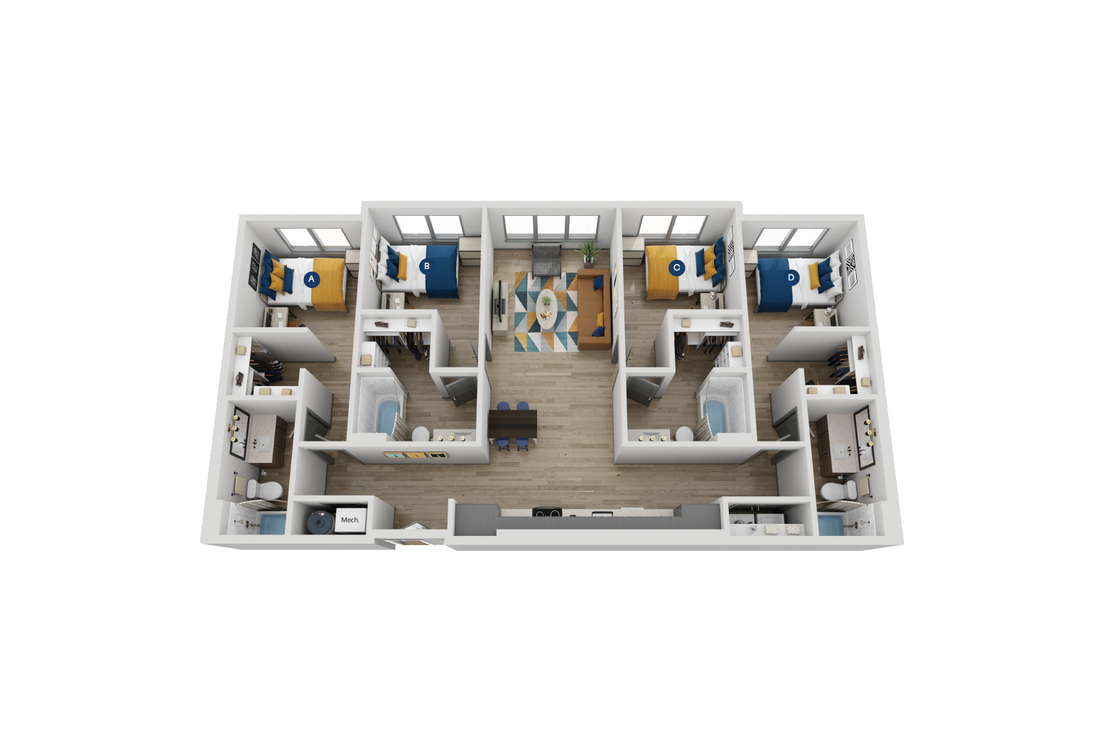 The Rive Atlanta 为 Georgia Tech 与 AUC 的学生提供多样户型选择。公寓距离校园与市中心仅数步之遥,是你探索 Atlanta 魅力的完美起点。社区以可持续理念运营,降低能源消耗与碳足迹,让你在舒适生活的同时更环保。房间类型