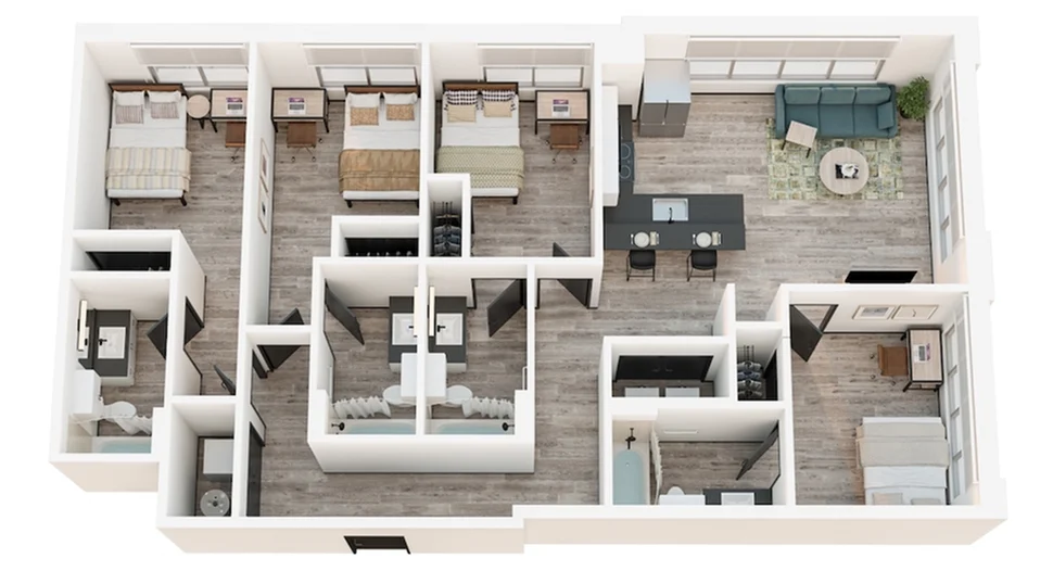 The Hive 为学生打造轻松又充满活力的居住体验,社区配备标志性屋顶休闲区、全套家具的游戏室、健身房等丰富设施,让你在校园之外仍能享受社交、放松与生活的平衡。无论是搭电梯看城市日落、课前快速锻炼,还是与朋友在公共空间聚会,这里都将亚特兰大生活的精彩直接带到你家门口。房间类型