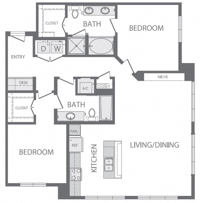 Windsor at West University 坐落于休斯顿最具声望的 West University 社区,将高端居住品质与卓越区位完美结合。周边汇聚 Rice University、Rice Village、Hermann Park 及德州医学中心,餐饮、购物与夜生活近在咫尺。社区提供精致的单间及一至两居室户型,空间宽敞、设计优雅,并配备完善的高端配套。同时这里对宠物十分友好,不仅欢迎入住,更注重为宠物打造舒适自在的生活环境,营造真正有归属感的社区氛围。房间类型