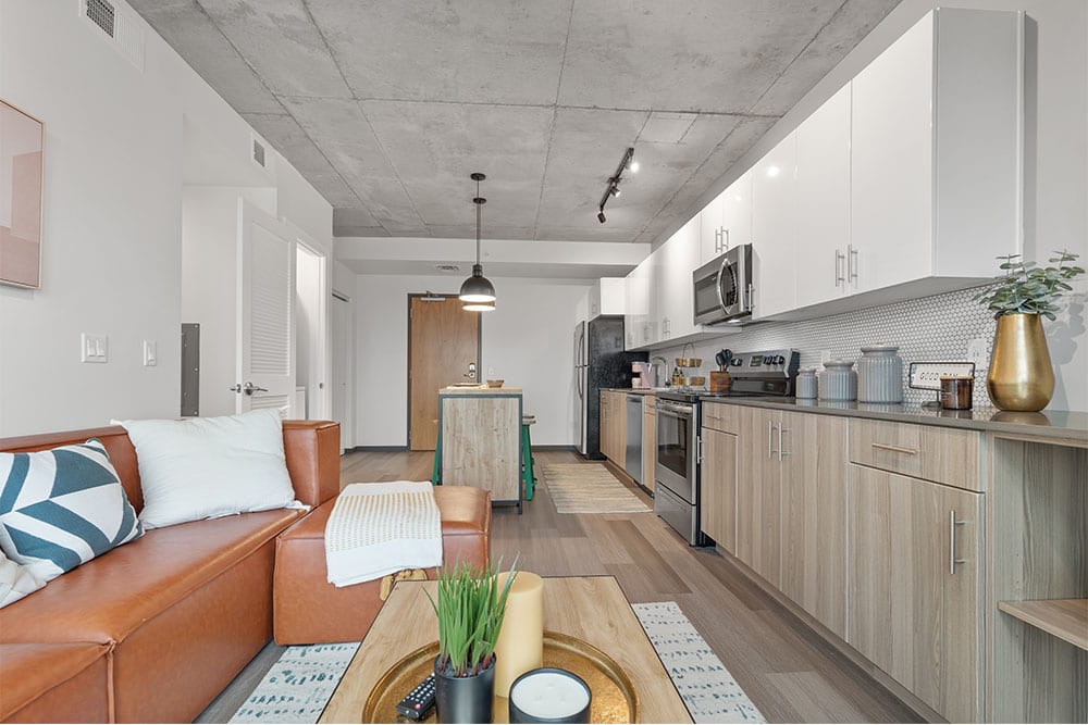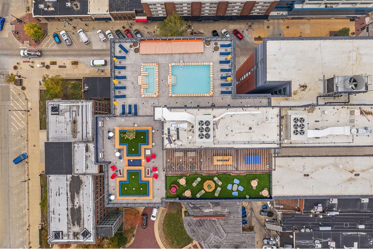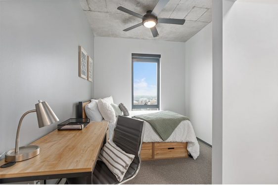 The Dean Campustown 建于 2020 年,位于 UIUC 学生主要生活区——绿街。整栋公寓共 17 层,提供 320 个套间。