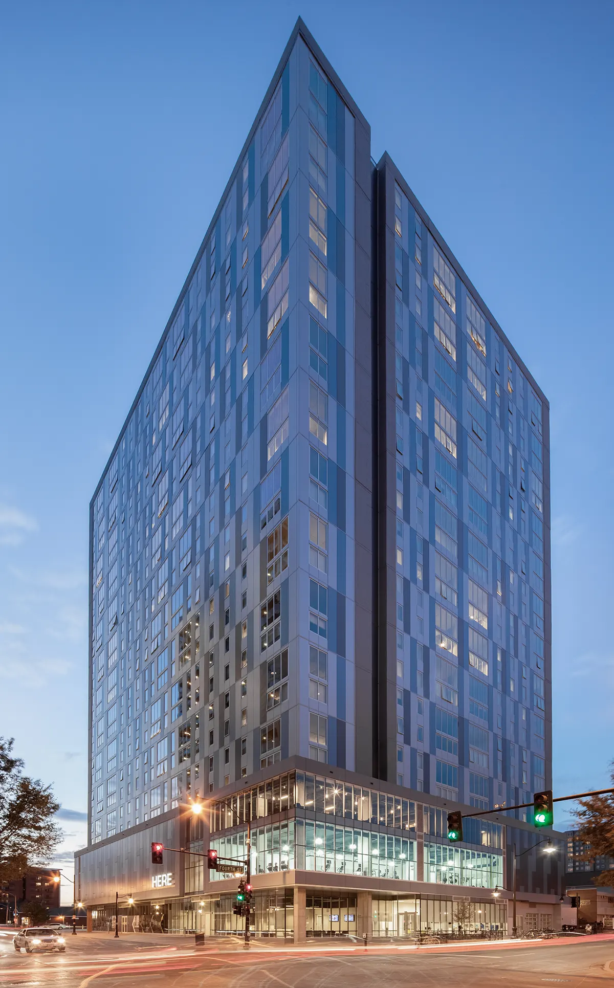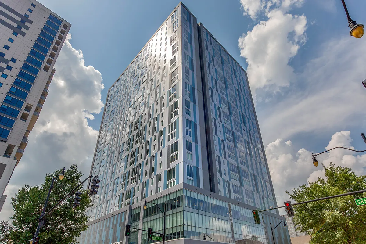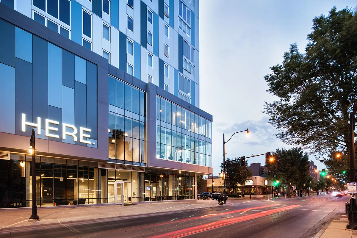 HERE Champaign 建于2015年,共15层,拥有526个套间,位于学校中心地段——绿街。