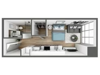 ANOVA uCity Square专为创新中心的专业群体而设,包括护士、医生、实验室与医疗技术人员、科学家、研究人员、教授、研究生以及创业者,地理位置优越,毗邻宾夕法尼亚大学、德雷塞尔大学和宾大长老会医院,让他们能够安居在理想之地。为了提供极致的舒适与便利,ANOVA uCity Square 精心打造了全配套的单间与一居室公寓,配备定制家具与精美装饰,完美呈现 ANOVA 品牌的精髓。所有公寓均由设计师精心策划,既提供生活所需的一切设施,也附带多种令人心动的额外优势,为住户带来高品质的居住体验。房间类型