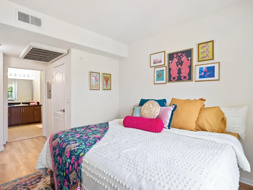 公寓距离USC步行约15分钟,搭乘免费Shuttle即可轻松到校,开车5分钟即可抵达洛杉矶市中心,周边10分钟范围内汇集了各类美食小吃和生活便利店,公寓内部还设有中央厨房并定期举办美食活动。房间内提供全套家具,单人卧室配备King Size大床(193×203cm),双人卧室配备Twin Size床(97×191cm),客厅带有46英寸电视,厨房采用开放式设计,配有冰箱、微波炉、花岗岩台面及现代橱柜,浴室则搭配大理石盥洗台和浴缸,此外室内还自带洗衣机和烘干机,生活极为便利。公共设施方面,全社区覆盖免费WiFi,配备学习室、商务中心、休息室,同时设有户外剧场、电影院、篮球场、健身房、沙滩排球场、度假风室内外泳池与温泉SPA,更有台球、乒乓球、烧烤区和喷泉表演等丰富的娱乐设施;社区配备完善的安保体系,安装摄像头和门禁系统,并有驻地人员管理与维护,让生活舒心又安心。