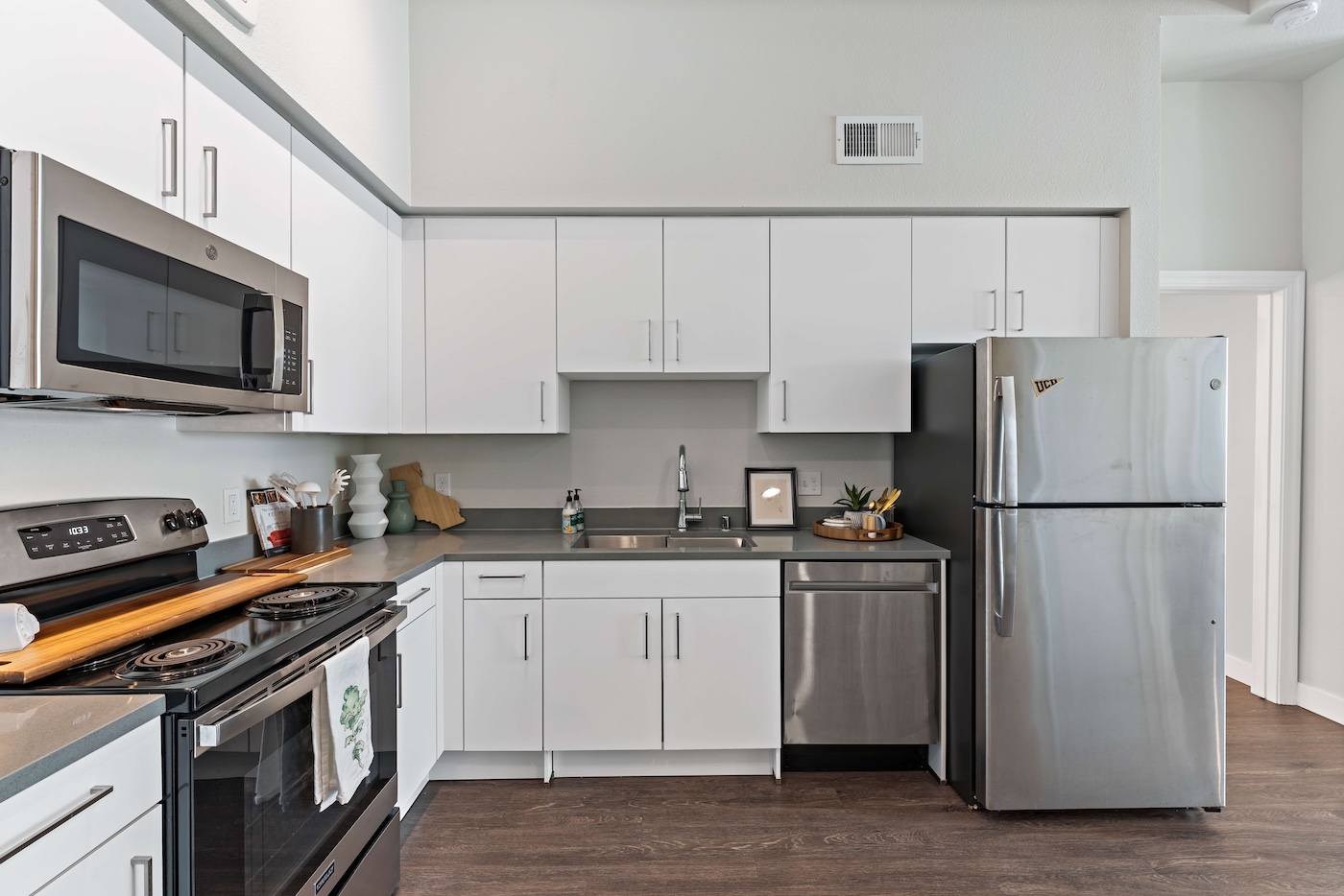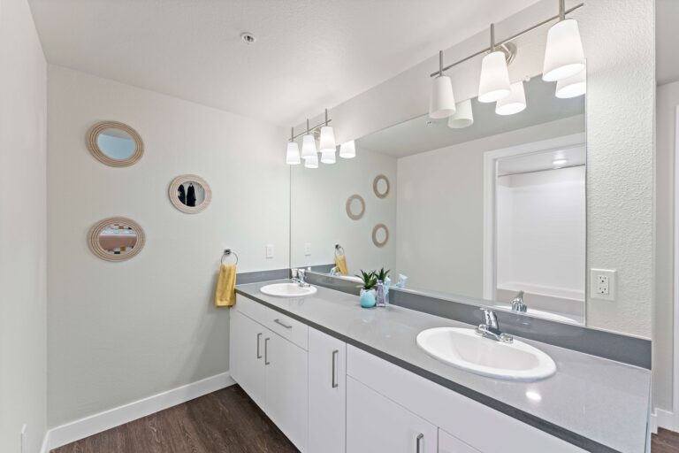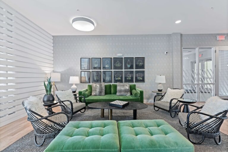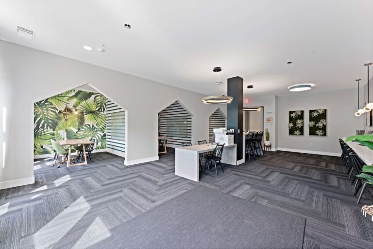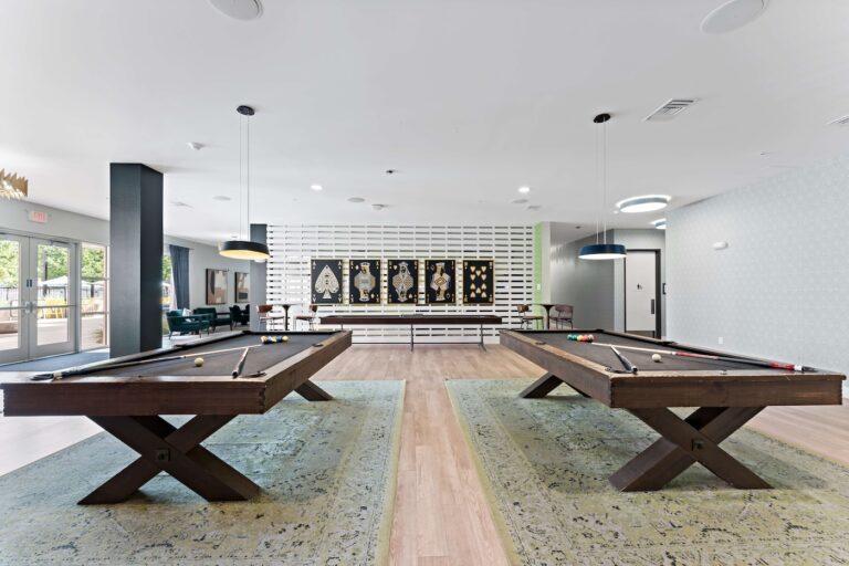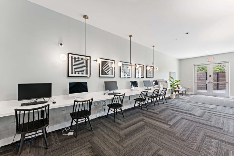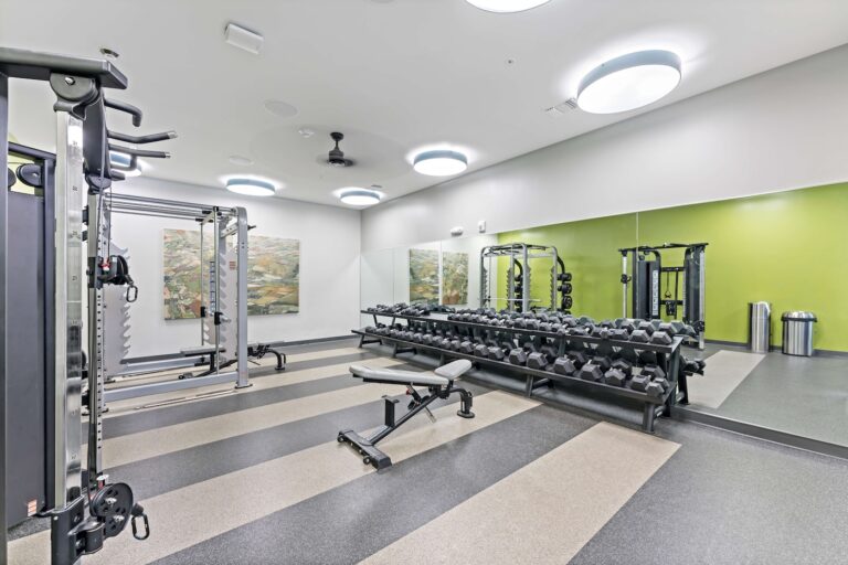 公寓提供全套家具配置,卧室配有带储物空间的 full-size 床、书桌与椅子;客厅配备 55 英寸平板电视、沙发与茶几;厨房区域配有冰箱、洗碗机、烤箱、微波炉与灶台等全套厨房设备。每个单元都设有独立洗衣机与烘干机,生活便利度极高。公共区域设施丰富,包括恒温游泳池、24 小时健身房、卡拉 OK 室、邮件及包裹收发室,以及 24 小时紧急服务,为学生提供舒适、安全且充满活力的居住体验。