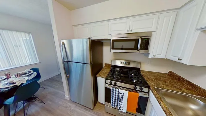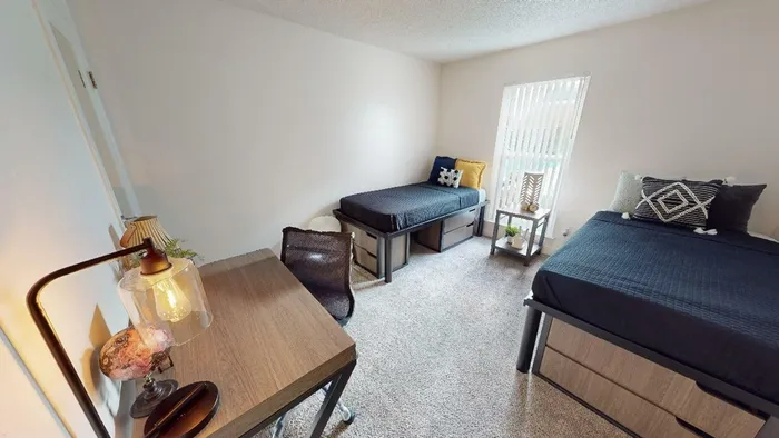 公寓内配备家具包,房间设有冰箱、洗碗机、空调、阳台以及室内洗衣机与烘干机,生活便利舒适。公共区域设施齐全,包括 24 小时健身房、自行车存放处、商业中心、游泳池、住户俱乐部、游戏室和带电视的休息区,并提供现场维护服务,为学生打造安全、舒适且社交丰富的居住环境。