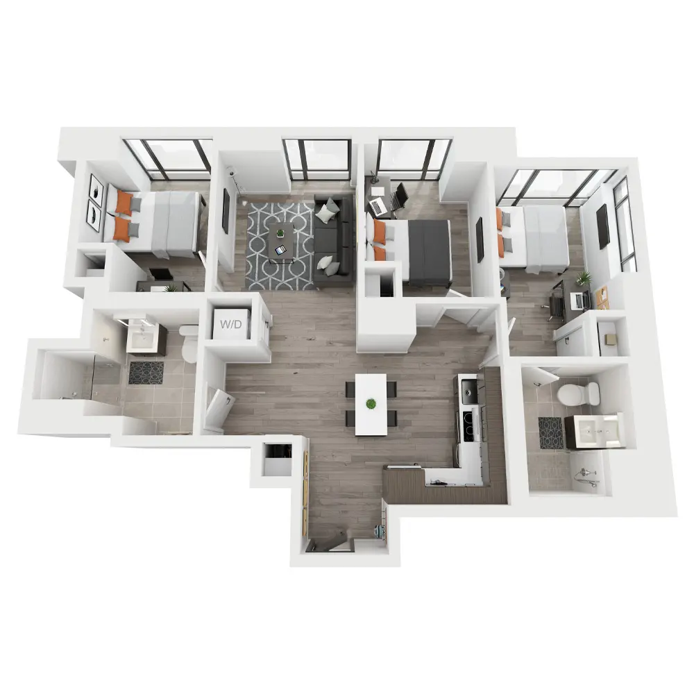 Monarch Heights 位于 415 West 120th Street,是一座融合创意与现代设计的高端公寓。整栋建筑以“无缝居住体验”为理念打造,配备先进设施与贴心服务。每间卧室与客厅均设有落地窗,采光充足,部分房源可俯瞰城市或 Morningside 公园美景。公寓全配家具,可按卧室租赁,配备全尺寸洗烘一体机、嵌入式照明、定制百叶窗及高效空间布局的专属家具。厨房空间宽敞通透,适合独享清晨时光或与室友、朋友欢聚。浴室设计精致,硬件与细节考究,提供舒适的使用体验。房间类型