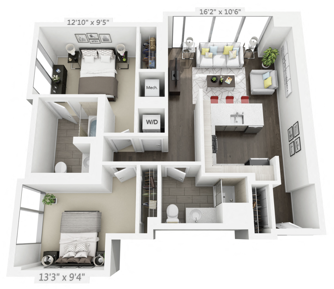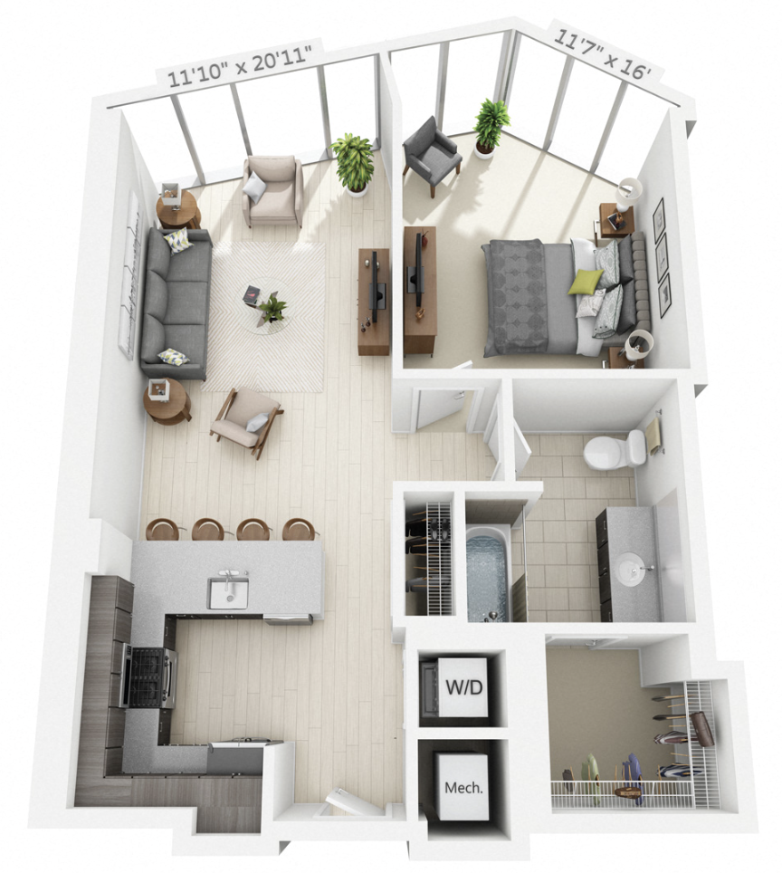 The Main公寓坐落于伊凡斯顿(Evanston)的核心地段,地理位置优越,靠近Rogers Park,周边有时尚餐厅、优质学校以及密歇根湖畔的公园与沙滩,生活环境惬意宜人。公寓配备奢华装修与高端配置,包括仿木地板、不锈钢燃气炉、石英台面、私人阳台等,所有户型均为宠物友好型。社区设施同样一流,设有24小时健身中心、景观露台和现代化住户休闲区,提供安全的门禁管理与舒适的生活体验。房间类型