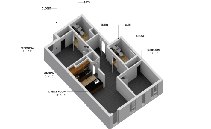 本公寓主打高品质居住体验,每间卧室均提供完整床架+床垫、独立衣橱、书桌及椅子,床下设储物柜满足收纳需求。公共区域配置沙发、双人沙发、咖啡桌、吧台凳及智能电视,营造社交与休闲空间。厨房电器一应俱全,包含洗碗机、内置洗衣机及烘干机,省去额外采购烦恼。公寓公区设施亮眼,涵盖屋顶观景露台、住客休息室、专业健身中心、安静书房,以及放松身心的桑拿与蒸汽浴室。周边生活配套成熟,汇聚多元餐厅、便利店,步行7分钟可达亚洲杂货店,轻松解决日常所需。