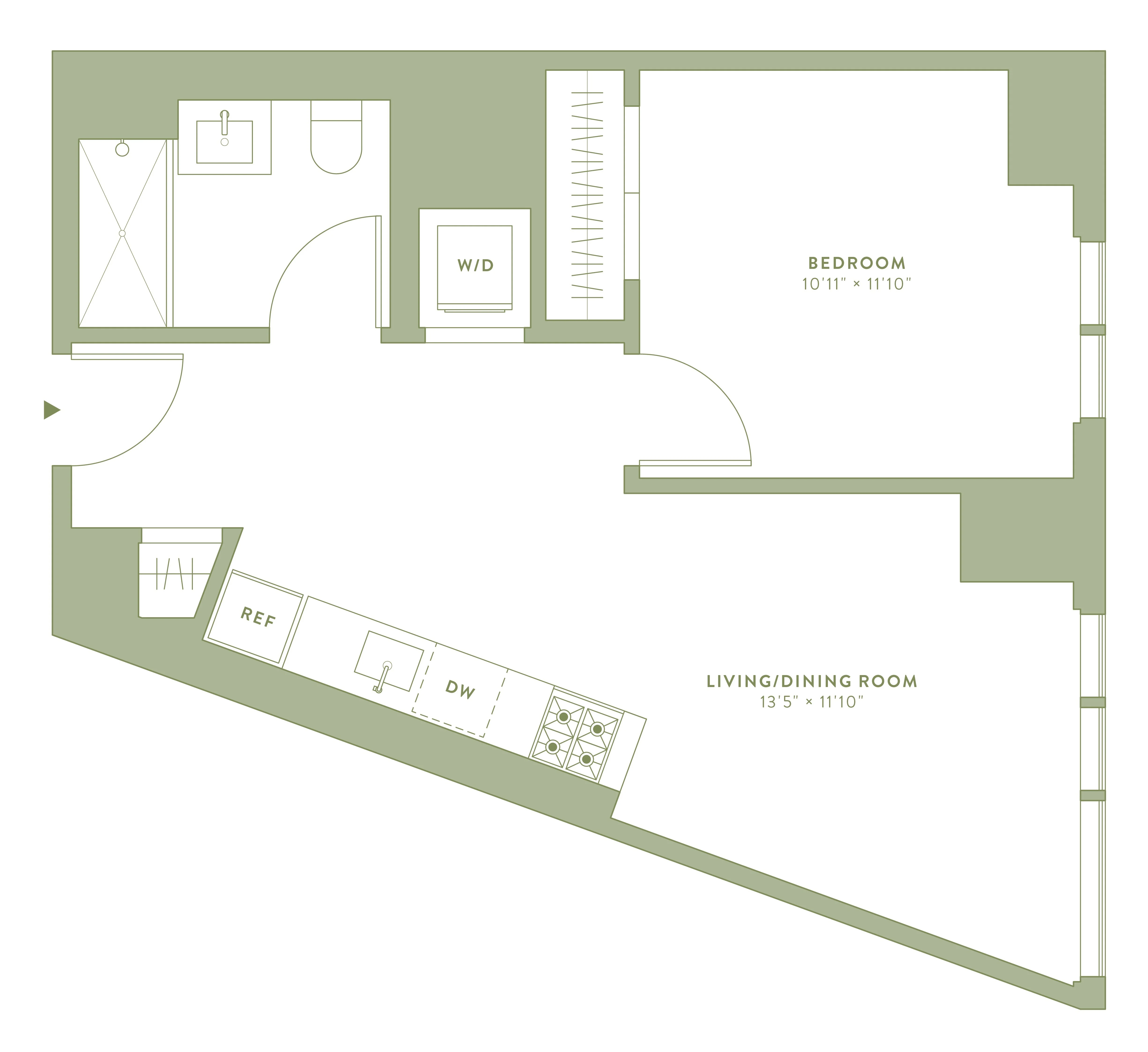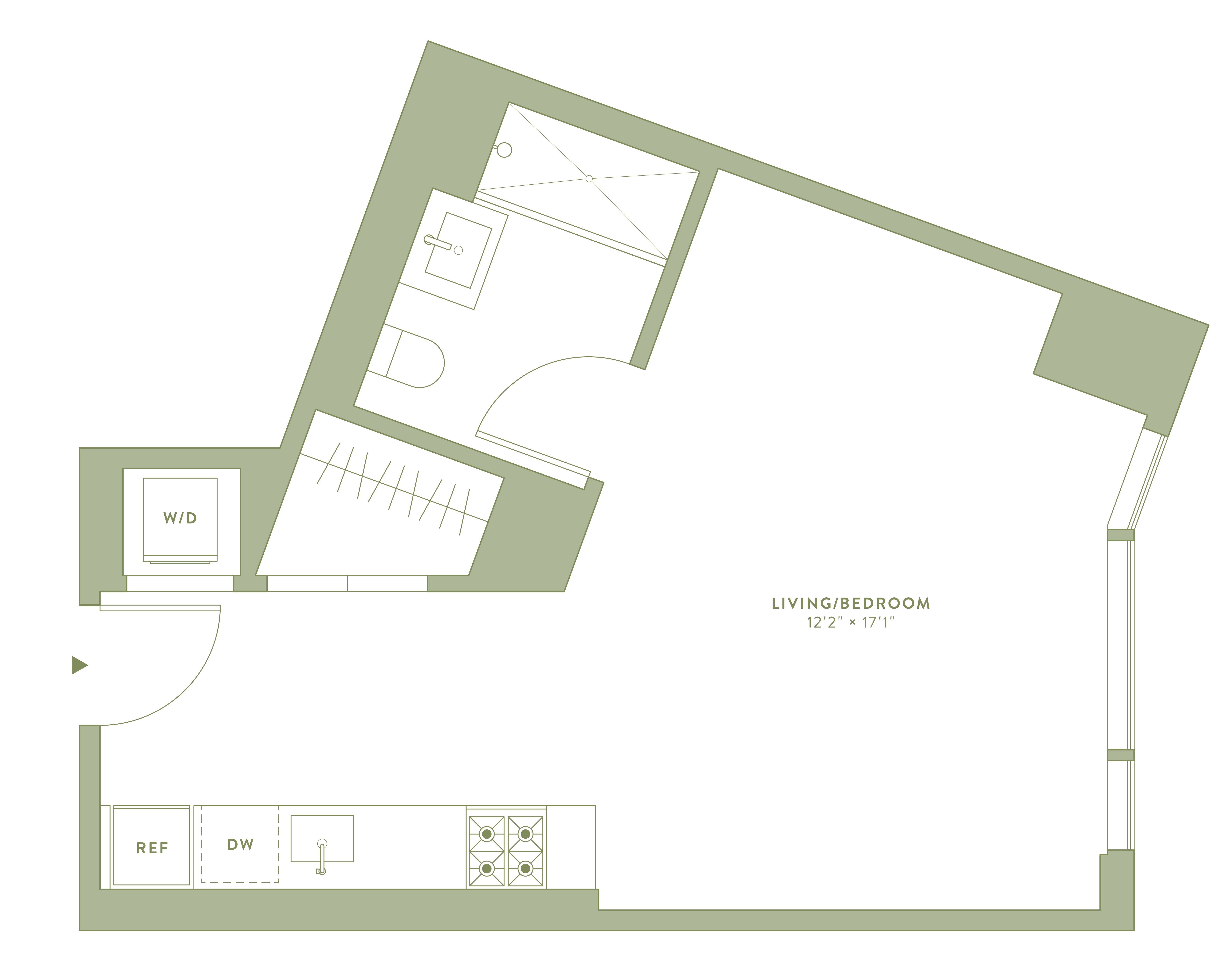 The Willoughby 屹立于布鲁克林核心地段,以简约流畅的玻璃幕墙造型在天际线上留下醒目的印记。公寓高达 34 层,落地窗设计让住户尽享四面绝美城市景观,完美融合便利与格调,重新定义布鲁克林的高端生活标准。这里是一个可放松、社交、重焕活力并与社区紧密连接的理想居所,奢华、舒适与创新在此交汇,打造无与伦比的居住体验。房间类型