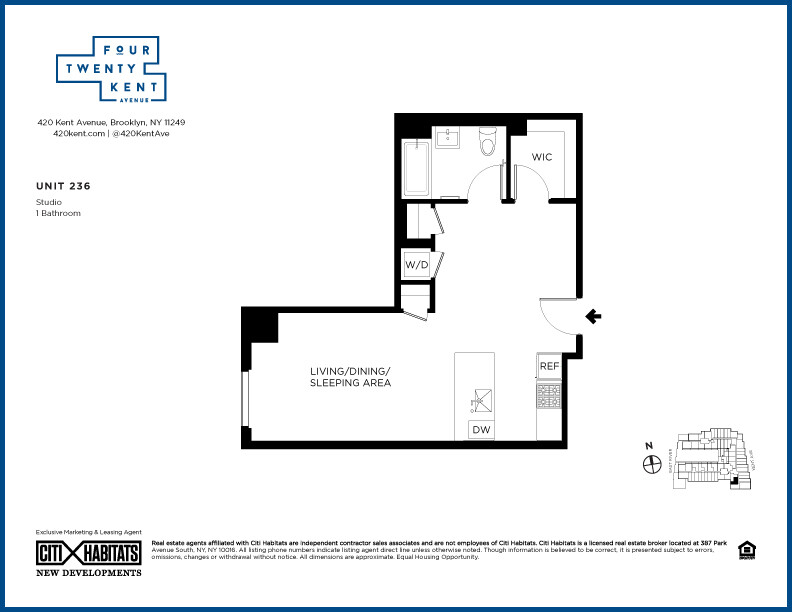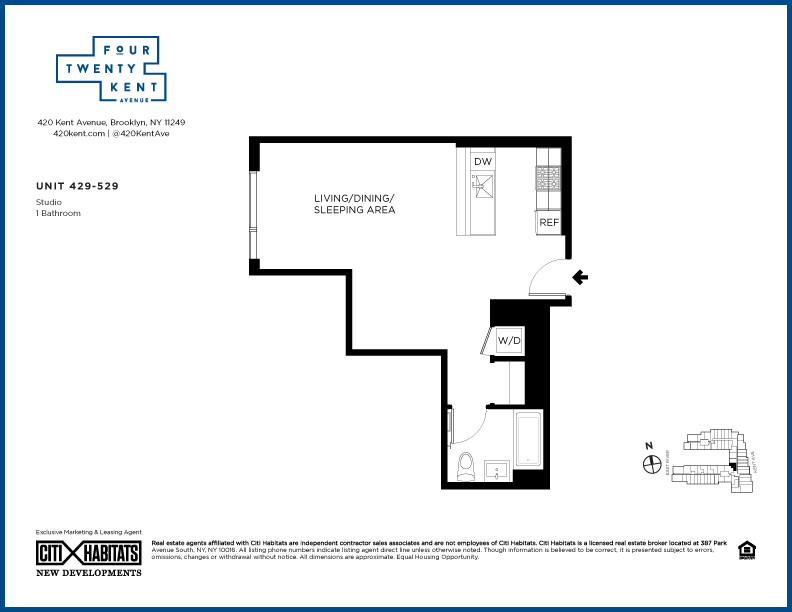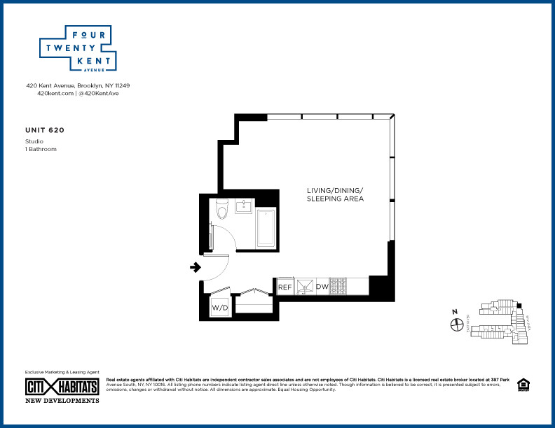420 Kent Avenue 坐落于布鲁克林威廉斯堡东河岸,由屡获殊荣的建筑事务所 ODA New York 设计,由三座极具未来感的玻璃塔楼组成。项目拥有 857 套住宅、约 2 万平方英尺的餐饮与零售空间、超过 2.5 万平方英尺的室内配套设施,以及逾 8 万平方英尺的户外区域,包括 400 英尺长的滨河步道,展现无与伦比的城市滨水生活方式。公寓距曼哈顿仅一站地铁或渡轮之遥,尽享便捷与宁静并存的都市体验。房间类型