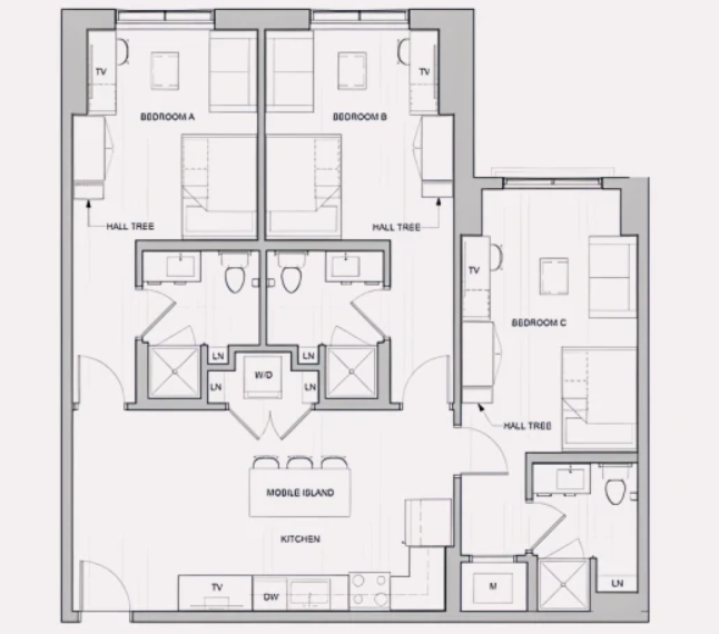 这处位于匹兹堡的现代化学生公寓社区,地理位置极其优越,距离匹兹堡大学校园仅有几步之遥。其独特地融合了前卫的氛围、标志性的设计以及经典的大学体验,为学生们打造了一个专属的生活空间。在这里,一切皆以您的时间和生活为中心,让您充分享受属于自己的世界。房间类型