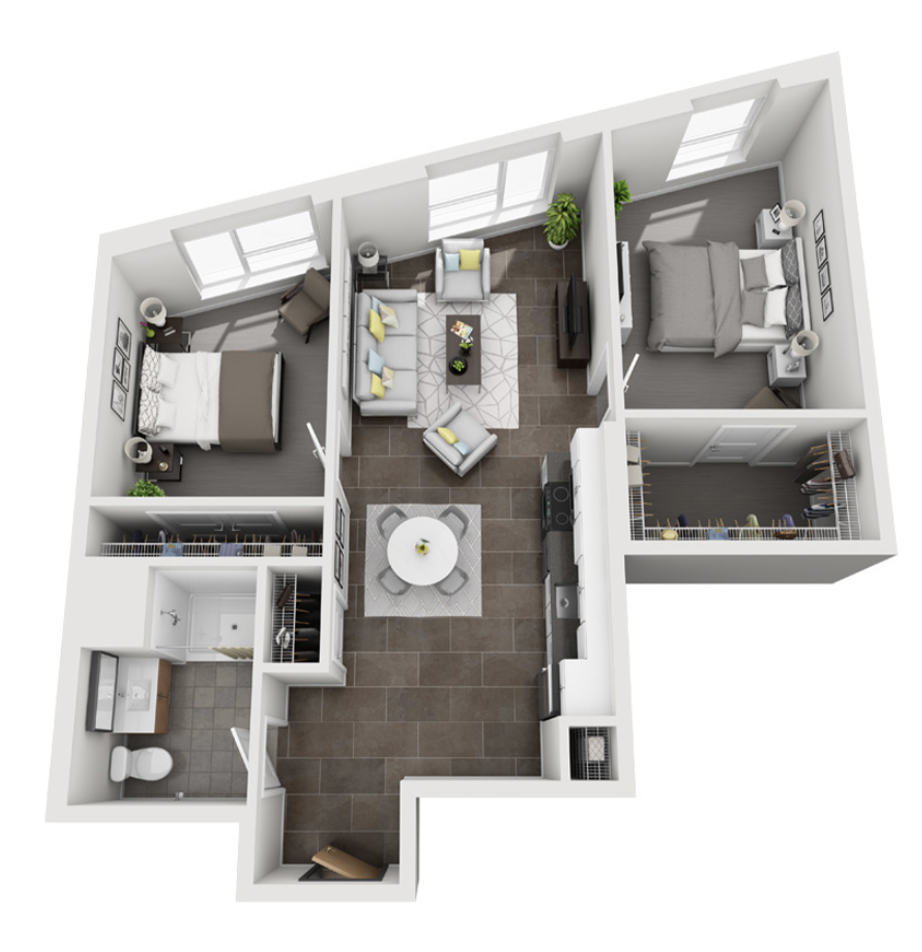 Watermark Central 坐落于剑桥 Mass 与 Main 的黄金交汇处,是集高层现代公寓与精品低层住宅于一体的综合社区,提供三种独特的居住选择——奢华的 Watermark Central、活力十足的 Link,以及温馨私密的 Union House。房间类型