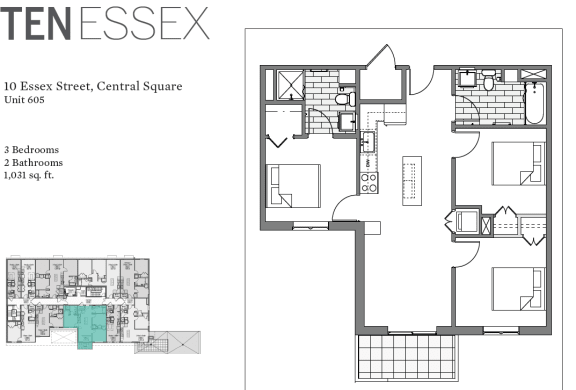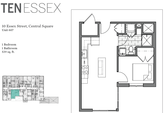 Ten Essex 公寓地理位置优越,紧邻 MBTA 红线 Central Square 站,出行便捷。周边餐厅、夜生活、购物场所与知名学府一应俱全,几分钟即可抵达哈佛大学、麻省理工学院、哈佛广场、肯德尔广场及波士顿市中心。
