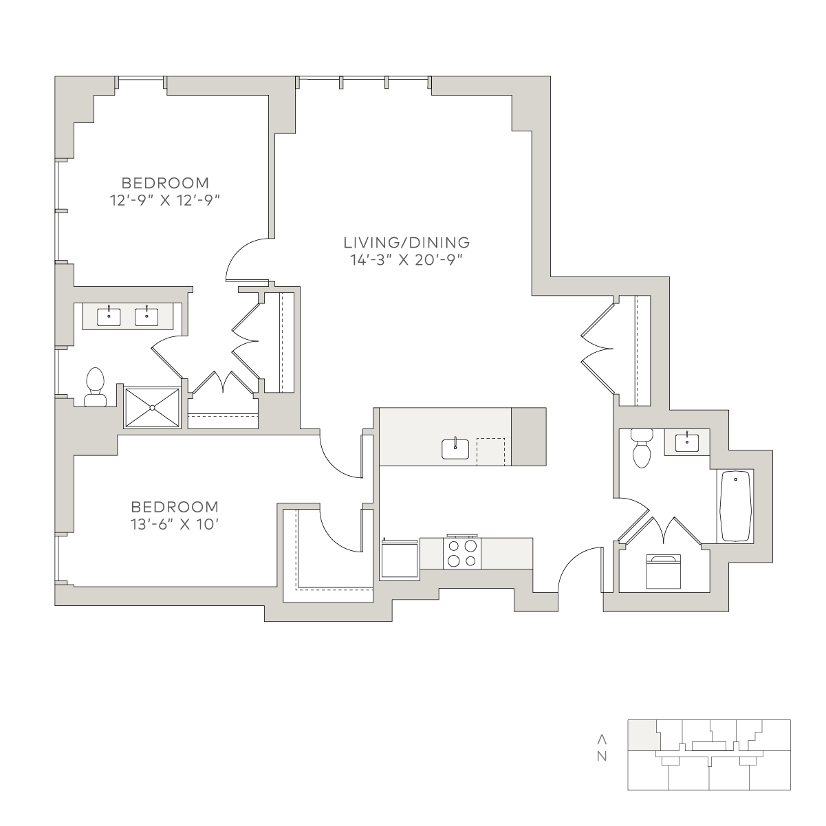 Solstice on the Park 坐落于芝加哥海德公园的黄金地段,门前即是 500 英亩的自然绿地——杰克逊公园。花园、步道、湖泊、沙滩与运动场环绕四周,出门即能亲近自然。社区环境宁静优雅,街道两旁绿树成荫,建筑典雅,步行即可到达生活所需的一切;无论驾车、自行车或公共交通,仅 15 分钟即可抵达芝加哥市中心。房间类型