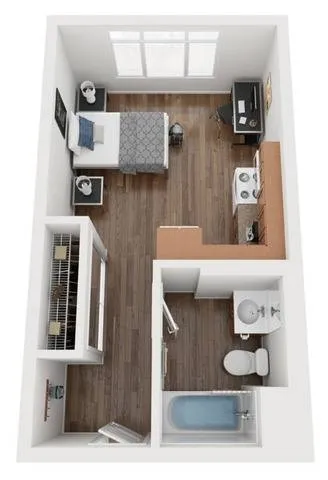 公寓紧邻 UC Berkeley,步行即可到达校园与周边餐饮、商圈及娱乐区。提供配备齐全的现代化公共设施,包括 24 小时健身房、温馨庭院、景观屋顶休闲区,并支持宠物友好生活。另有 $0 押金计划,让入住更加轻松。房间类型