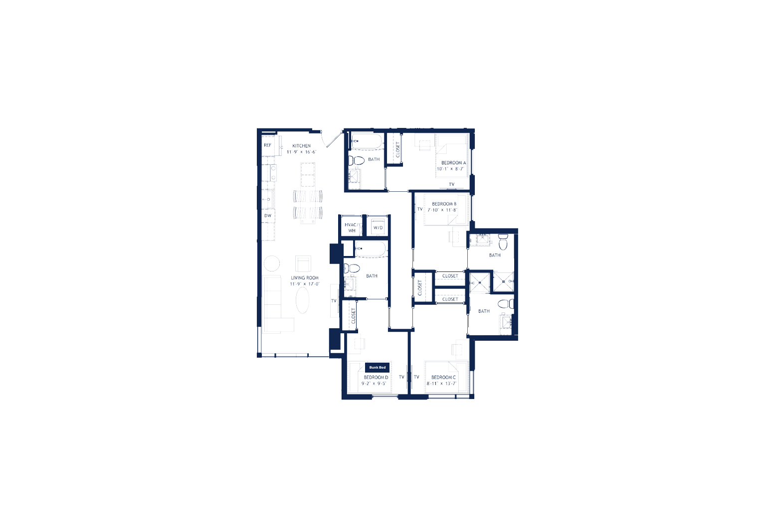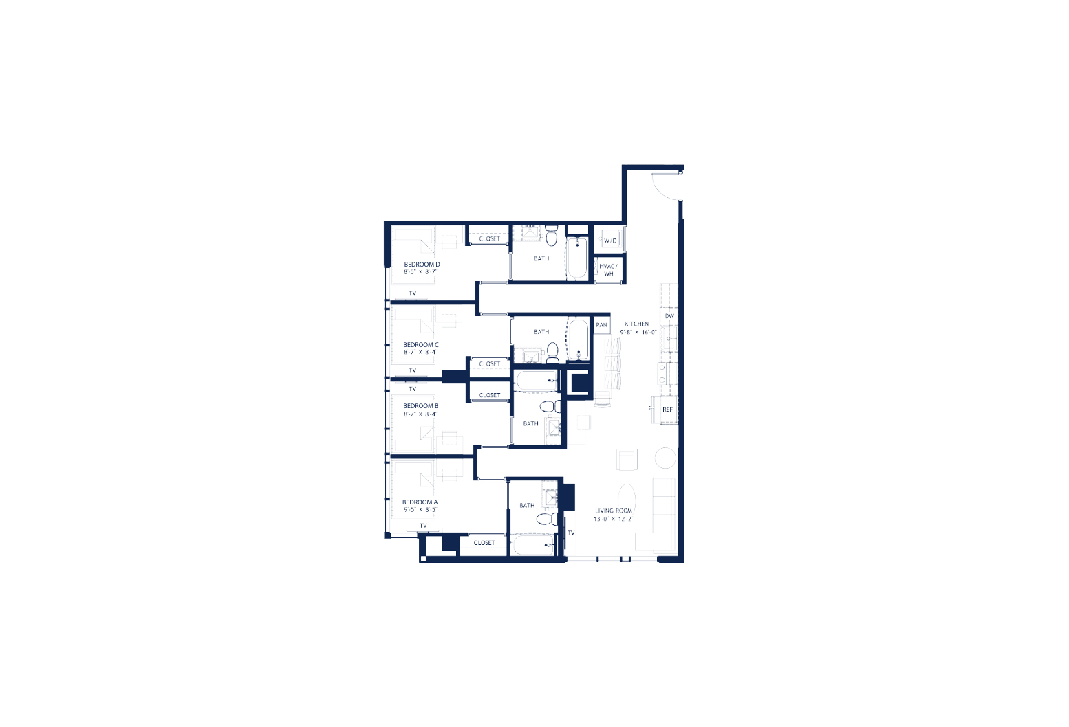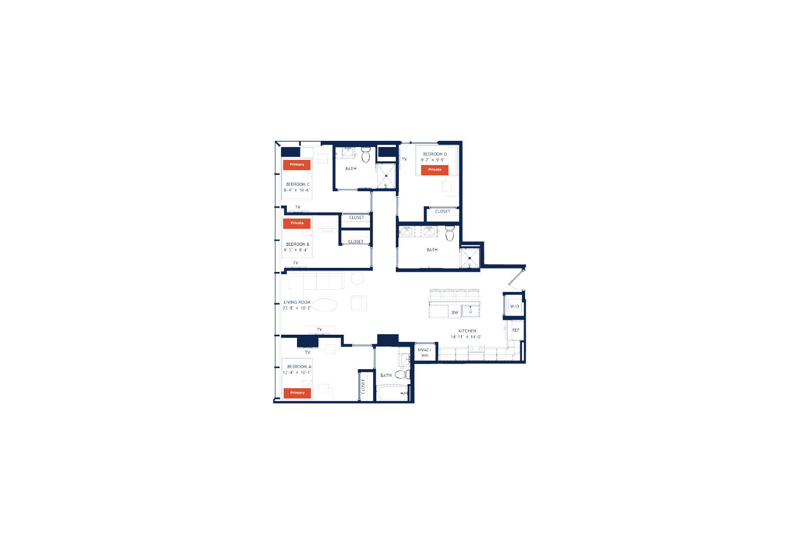 Whistler 提供从经典 Studio 到现代五室户型的多样选择,满足不同同学的居住需求。距离 Georgia Tech 校园与市中心仅几步之遥,这里是你探索 Atlanta 魅力的一站式起点,生活与学习都超级便利。房间类型