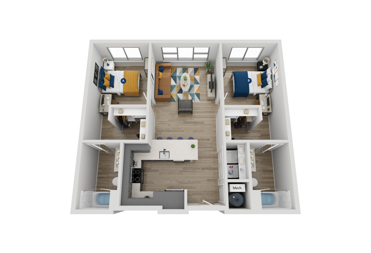 The Rive Atlanta 为 Georgia Tech 与 AUC 的学生提供多样户型选择。公寓距离校园与市中心仅数步之遥,是你探索 Atlanta 魅力的完美起点。社区以可持续理念运营,降低能源消耗与碳足迹,让你在舒适生活的同时更环保。房间类型
