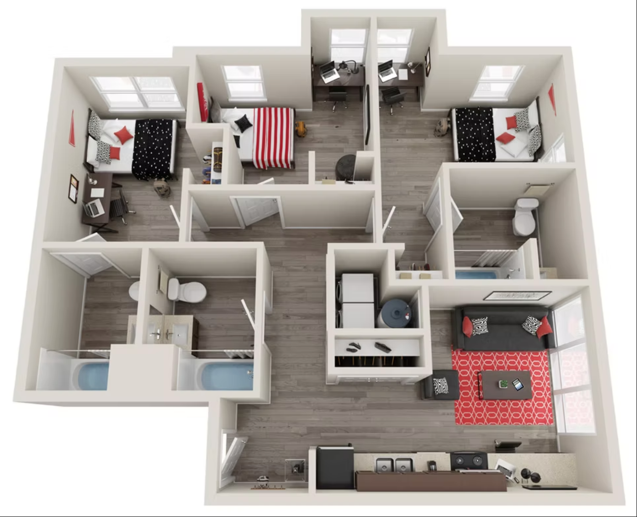 舒适的甲板,带户外烧烤区、聚会空间及甲板单元